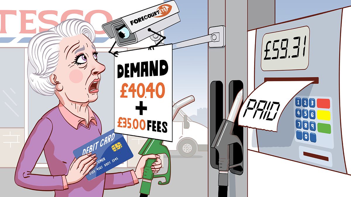 التهديدات: تم إرسال طلب قارئ بمبلغ 40.40 جنيهًا إسترلينيًا بالإضافة إلى رسوم إدارية قدرها 35 جنيهًا إسترلينيًا ، من شركة تدعي أنها أطلقت دون دفع ثمن البنزين
