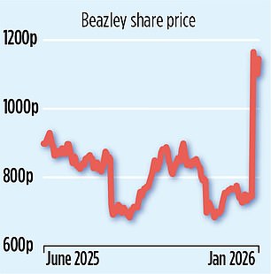 إنهم يجلسون على أرباح ورقية يبلغ مجموعها 154000 جنيه إسترليني بعد أن ارتفعت أسهم Beazley الأسبوع الماضي عندما قامت شركة التأمين السويسرية العملاقة أخيرًا بملاحقتها طويلة الأمد لتحقيق هدفها العام على مؤشر FTSE 100.