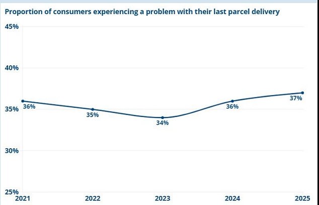 ومن بين الأشخاص الذين واجهوا مشكلة، قال 24% إن الطرود تُركت في مكان غير آمن، في حين أبلغ نفس العدد عن تأخر التسليم. وقالت نسبة أكبر (29 بالمائة) إن سائق التوصيل غادر قبل أن يتاح لهم الوقت للذهاب إلى الباب.