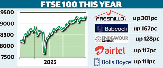 ارتفعت FTSE 100 بنسبة 14.5 في المائة هذا العام ، حيث استفادت بعض الأسهم من عدم اليقين العالمي ، لا سيما تلك التي ركزت على الذهب وصناعة الدفاع.