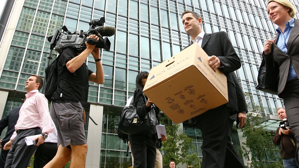 نقطة مضيئة: موظف في بنك ليمان براذرز يحمل ممتلكاته خارج المكتب في صندوق من الورق المقوى بعد انهيار البنك في عام 2008