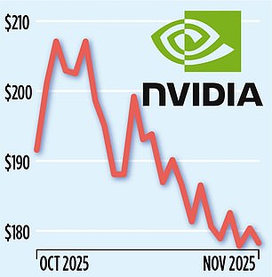 ومن ذروة بلغت أكثر من 5 تريليون دولار في أواخر أكتوبر، خسرت إنفيديا 700 مليار دولار من قيمتها.