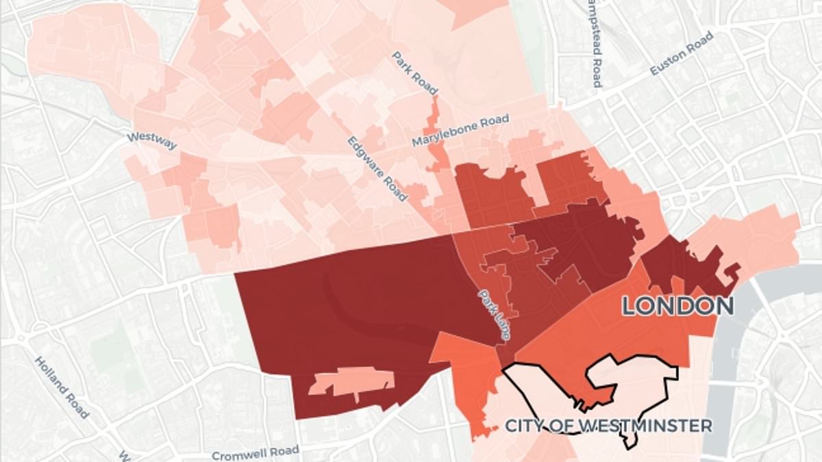 ولأغراض إحصائية، يتم تقسيم منطقة ويست إند في لندن إلى ستة مناطق LSOAs. وبين كل منطقة يتراوح معدل جرائم السيارات بين 0.05 بلاغاً يومياً إلى 1.55.