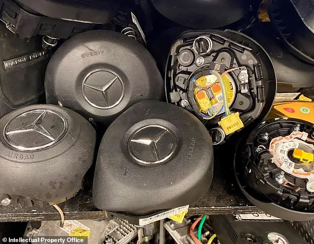 وفي مداهمة منفصلة قامت بها وحدة مكافحة جرائم الملكية الفكرية التابعة للشرطة في شرق لندن في سبتمبر الماضي، تم ضبط 500 وسادة هوائية مزيفة.