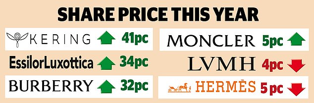 على مدى الأشهر الستة الماضية، انتعشت أسهم شركة LVMH، عملاق القطاع بقيمة 200 مليار جنيه استرليني، بنسبة 27 في المائة لتصل إلى 617 يورو (حوالي 540 جنيه استرليني).