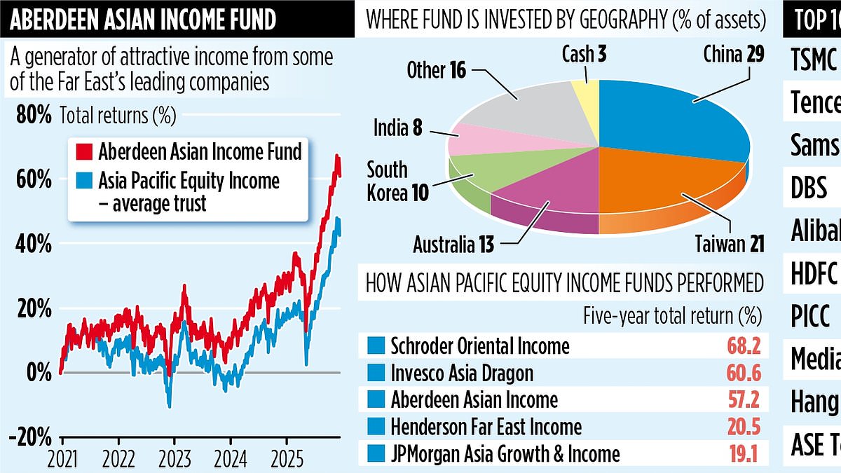 ومن بينها شركة أبردين للدخل الآسيوي المدرجة في لندن. وعلى مدى السنوات الخمس الماضية، جاء أكثر من نصف العائد (57 في المائة) الذي حققته للمستثمرين من أرباح الأسهم. كما قامت أيضًا بزيادة مدفوعات الدخل السنوية للمساهمين لمدة 16 عامًا بشكل مستمر.