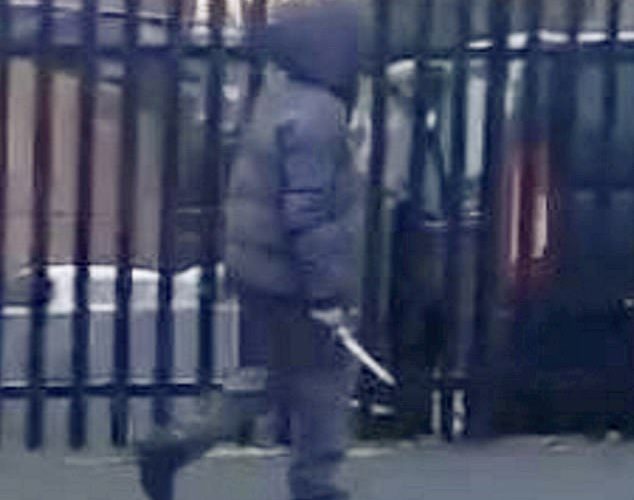 هذه هي اللحظة المرعبة التي يسير فيها رجل بسكين مقنع في الشارع أثناء سيره يلوح ...