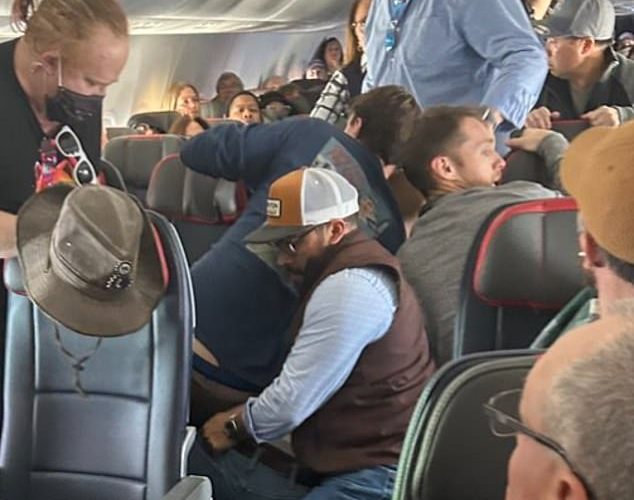 هذه هي اللحظة التي يطرق فيها ركاب شجعان رجلا على الأرض ويربطونه بشريط لاصق بعد ...