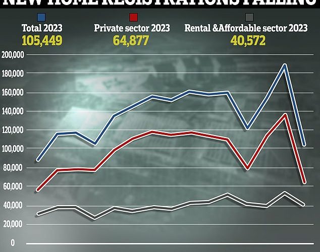 أظهرت أرقام جديدة أن عدد المنازل الجديدة المخطط لها من قبل شركات بناء المنازل انخفض بمقدار النصف تقريبًا في العام ...