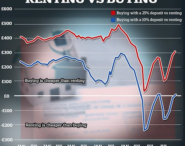 أظهرت بيانات جديدة أن شراء عقار بإيداع 10 في المائة لا يزال أرخص من الإيجار على الرغم من ارتفاع معدلات ...