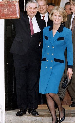صندوق النقود: نورمان لامونت، مع زوجته آنذاك روزماري، يغادر داونينج ستريت من أجل الميزانية في عام 1992 من شأن نظير ...