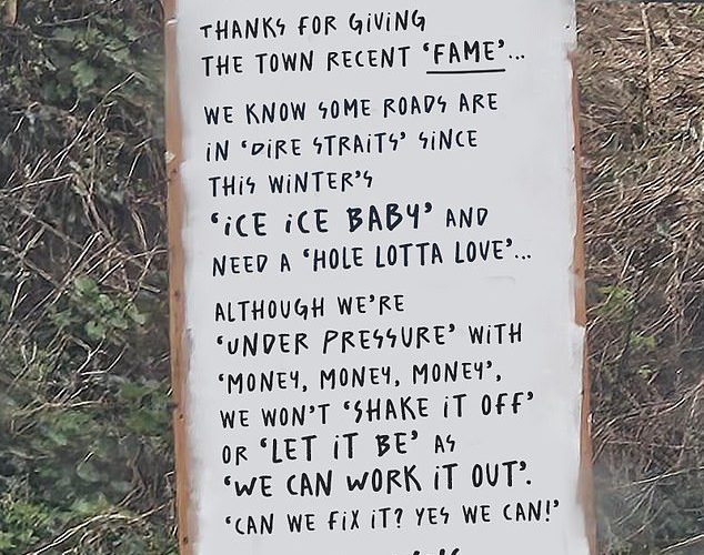 رد المجلس الذي سخر منه “دافنتري بانكسي” بشأن حالة الطرق المليئة بالحفر في المدينة التجارية بلافتة خاصة به تحاكي عمل ...