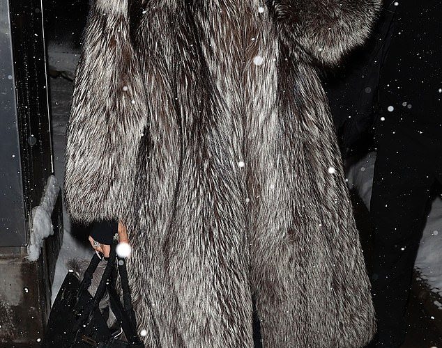 كلوي كارداشيان وخاطرت بإثارة غضب نشطاء حقوق الحيوان عندما ظهرت بمعطف ضخم من الفرو باللونين الأسود والرمادي أسبن، كولورادو مع ...
