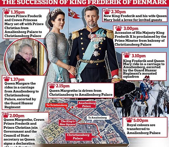 هكذا سيتكشف اليوم التاريخي عندما تتنازل الملكة عن العرش: 1:35 مساءً (12:35 مساءً بتوقيت جرينتش، 11:35 مساءً بأستراليا): انطلق فريدريك، ...