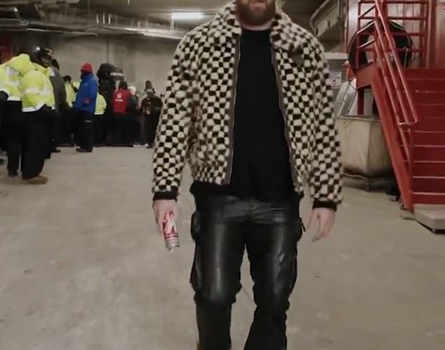 وصل لاعب فريق كانساس سيتي تشيفز ترافيس كيلسي إلى ملعب أروهيد قبل مباراة AFC Wild Card مباشرة ضد ميامي دولفينز. ...