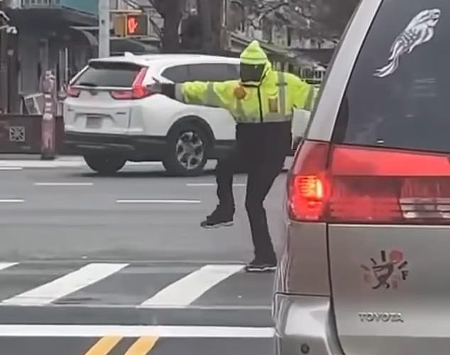 أظهر رجل بدا وكأنه حارس معبر، حركات رقص رائعة ربما تسببت في حادث سيارة في نيويورك. كان الرجل المجهول الهوية ...