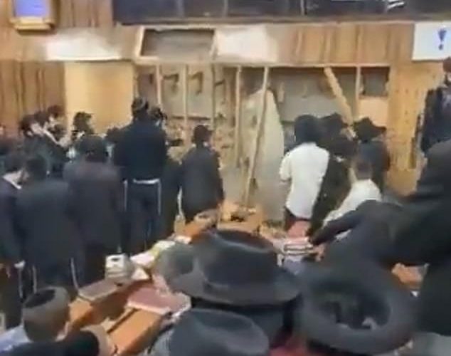 اندلعت مشاهد وحشية يوم الاثنين في كنيس يهودي في بروكلين بعد وصول عمال البناء لملء نفق تم حفره بشكل غير ...