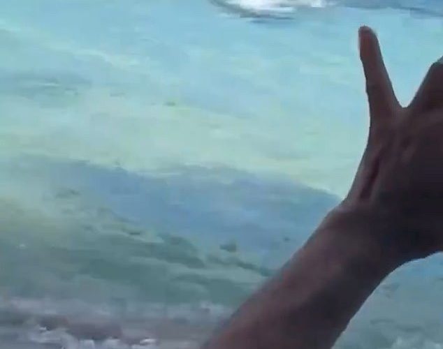 هذه هي اللحظة المرعبة التي يتجول فيها سمكة قرش في الماء بالقرب من الشاطئ بينما يحاول السياح الخائفون الوصول إلى ...