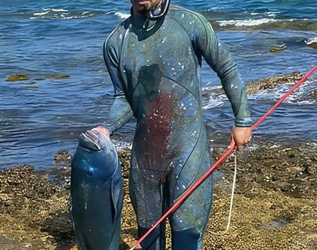 غرمت الشرطة صيادًا زُعم أنه قام بطعن سمكة زرقاء محبوبة بالرمح بشكل غير قانوني قبل أن يتظاهر بفخر مع السمكة ...
