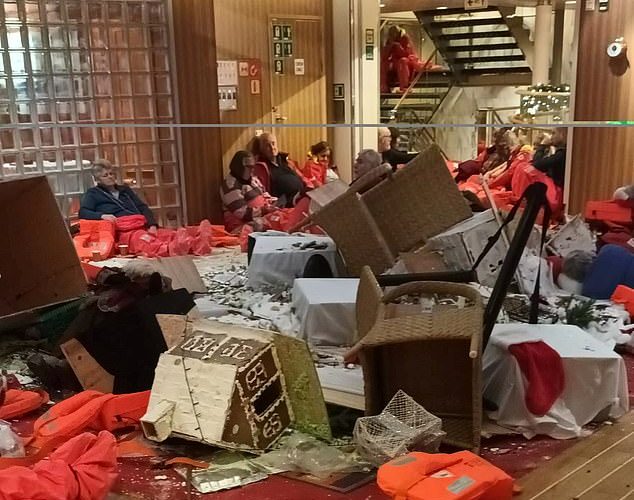 هذه هي اللحظة المرعبة التي يجلس فيها الركاب وهم يرتدون سترات النجاة، بينما تصطدم أمواج هائلة يبلغ ارتفاعها 70 قدمًا ...