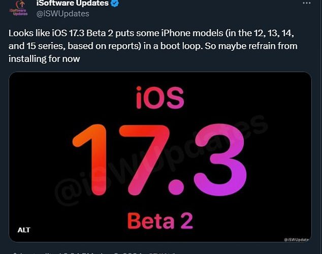 سحبت شركة التكنولوجيا العملاقة Apple تحديث نظام التشغيل الجديد المعيب، iOS 17.3 Beta 2، بعد تقارير تفيد بأن البرنامج يقوم ...